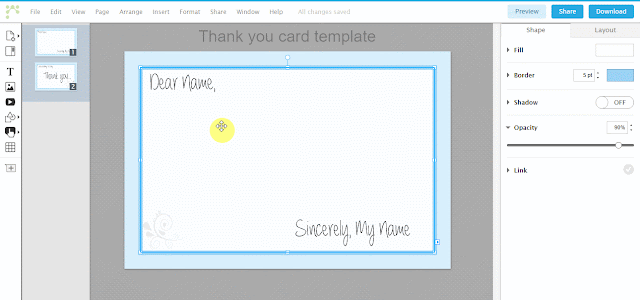 Click on the document title to rename the document. I named my document "Thank you card template" because I will turn this into a template that I can reuse.